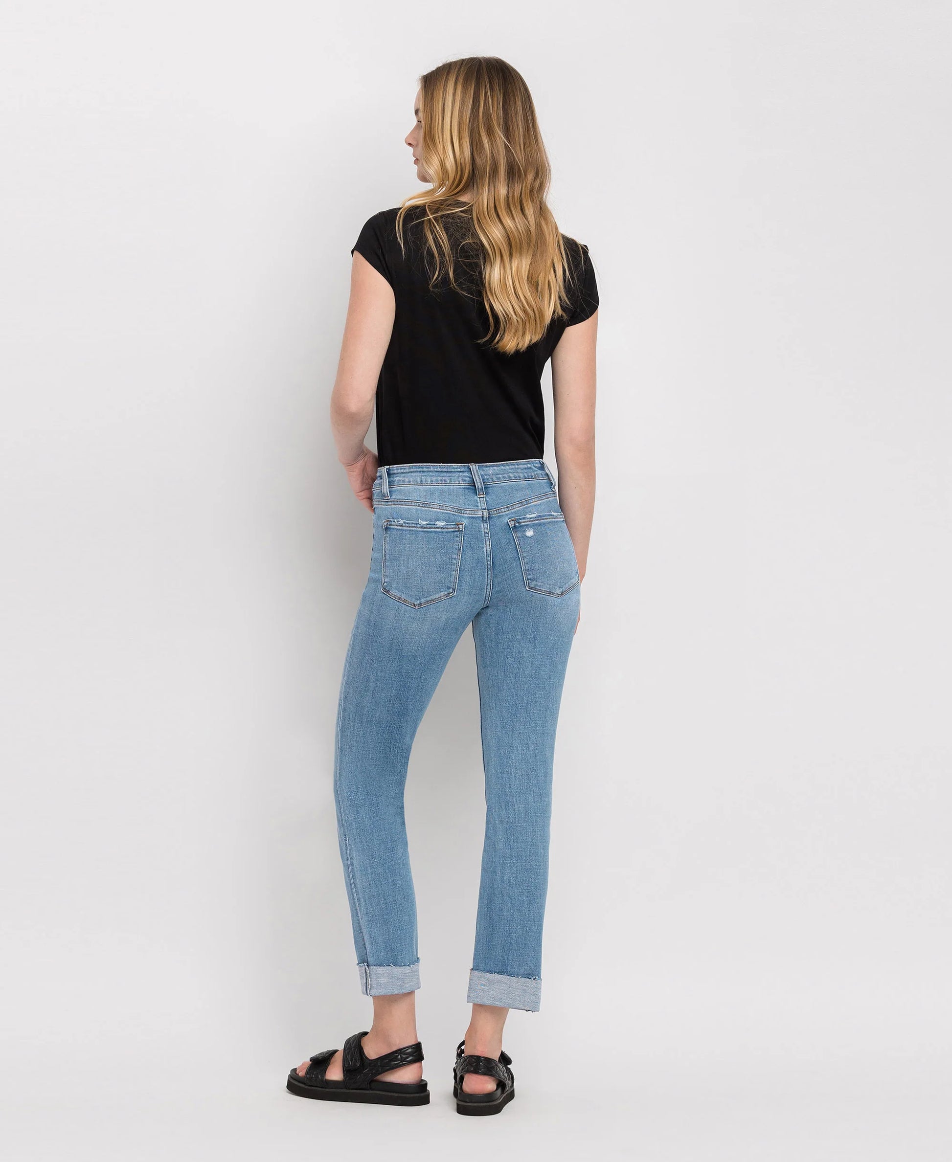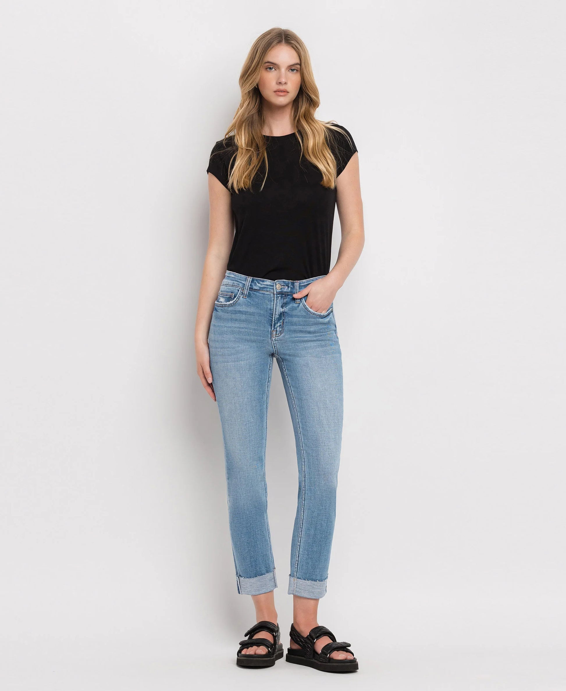 Mid Rise Cuffed Crop Slim Straight JeanFeel