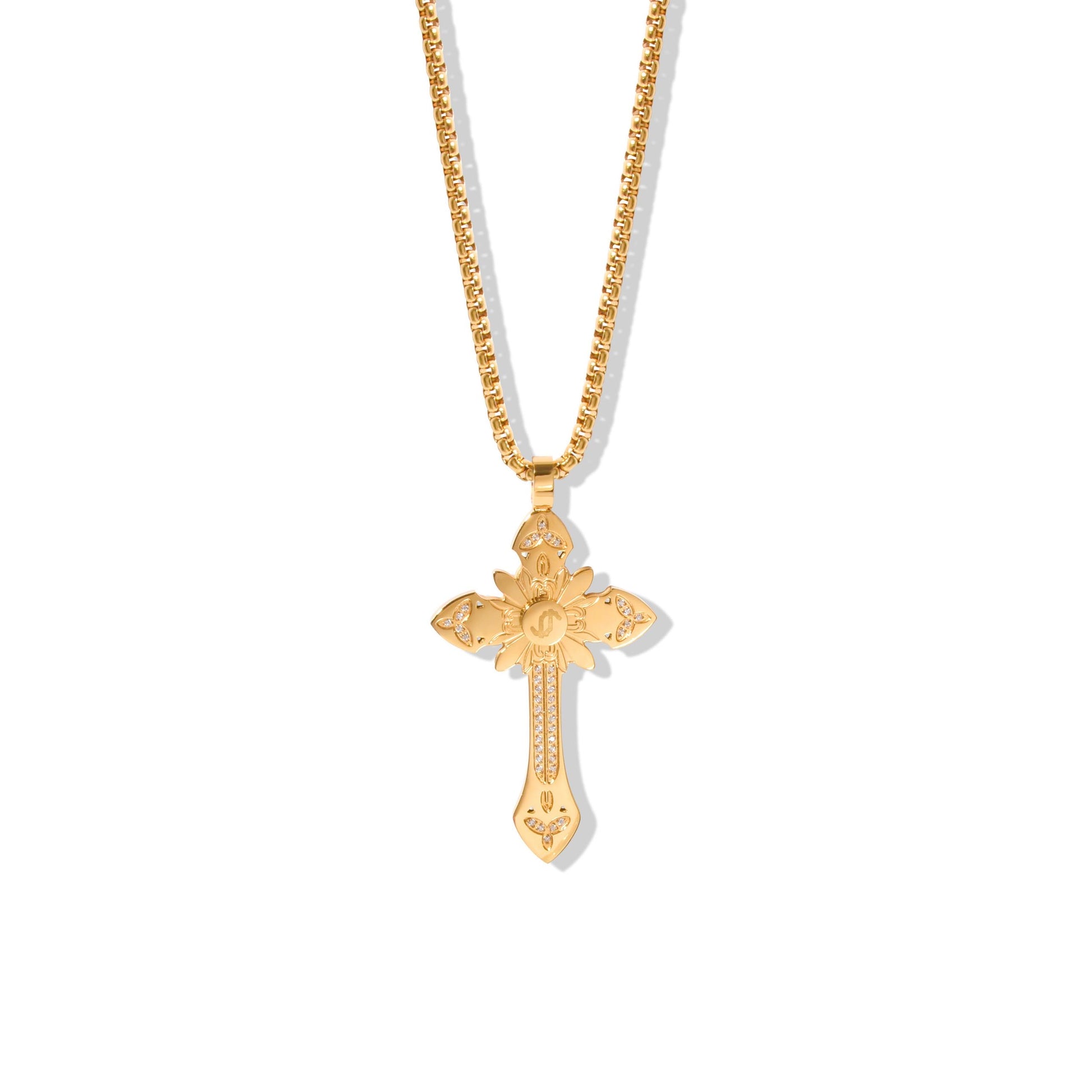 Modern and radiant, this 22” chain captures the pulse of Tokyo. Plated in 18K yellow gold, it showcases the Soltanto cross with Moissanite stones, representing bold ambition and refined energy.